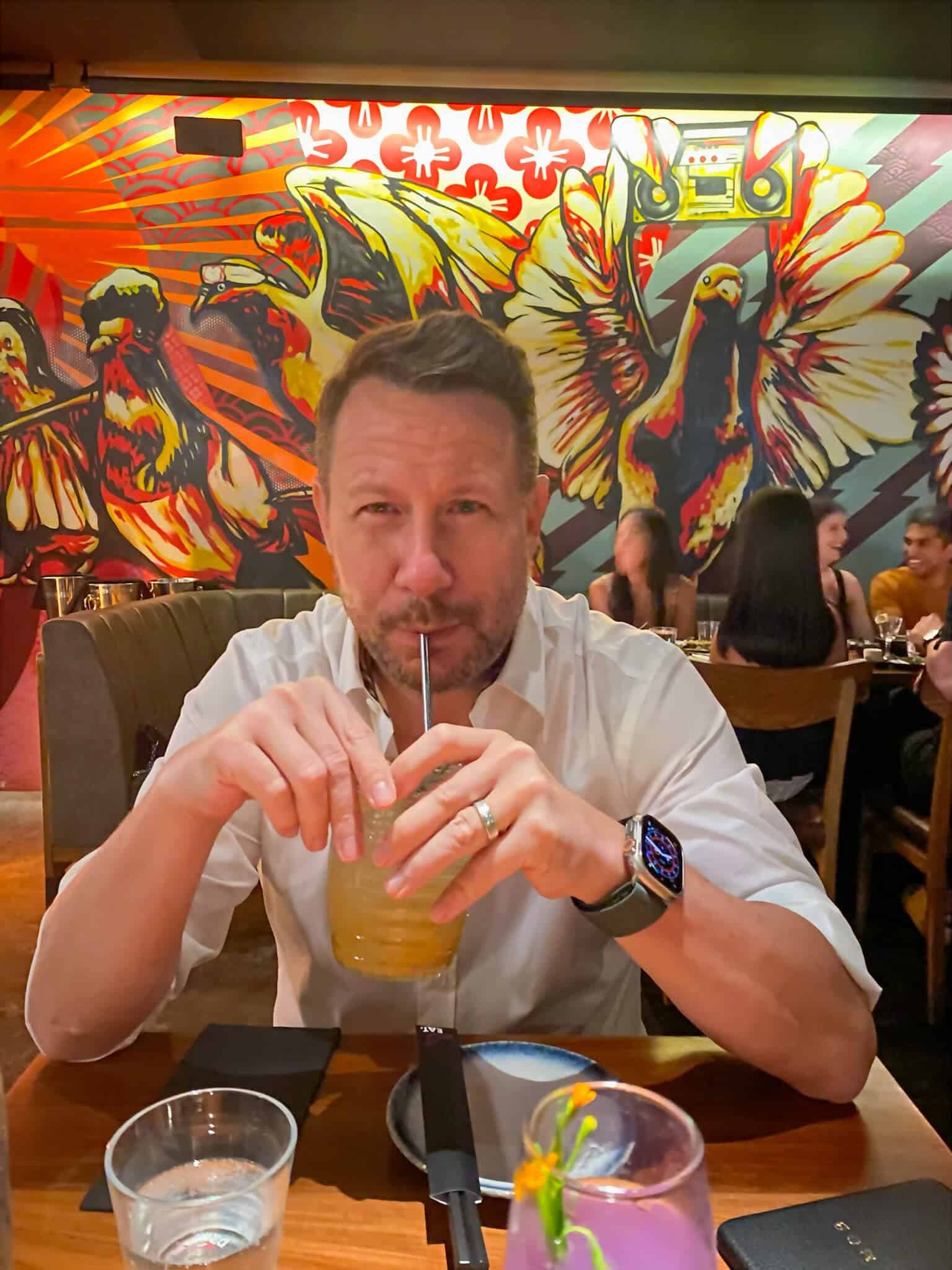 Black walls, dimmed lighting mixed up with massive pulp fiction-type murals dominated the walls, and funky-looking pigeons were painted everywhere, thanks to Street artist ZERO (Zulkarnaen Othman). This is not a lunch restaurant, more a feeling of being in a nightclub. More about that later.