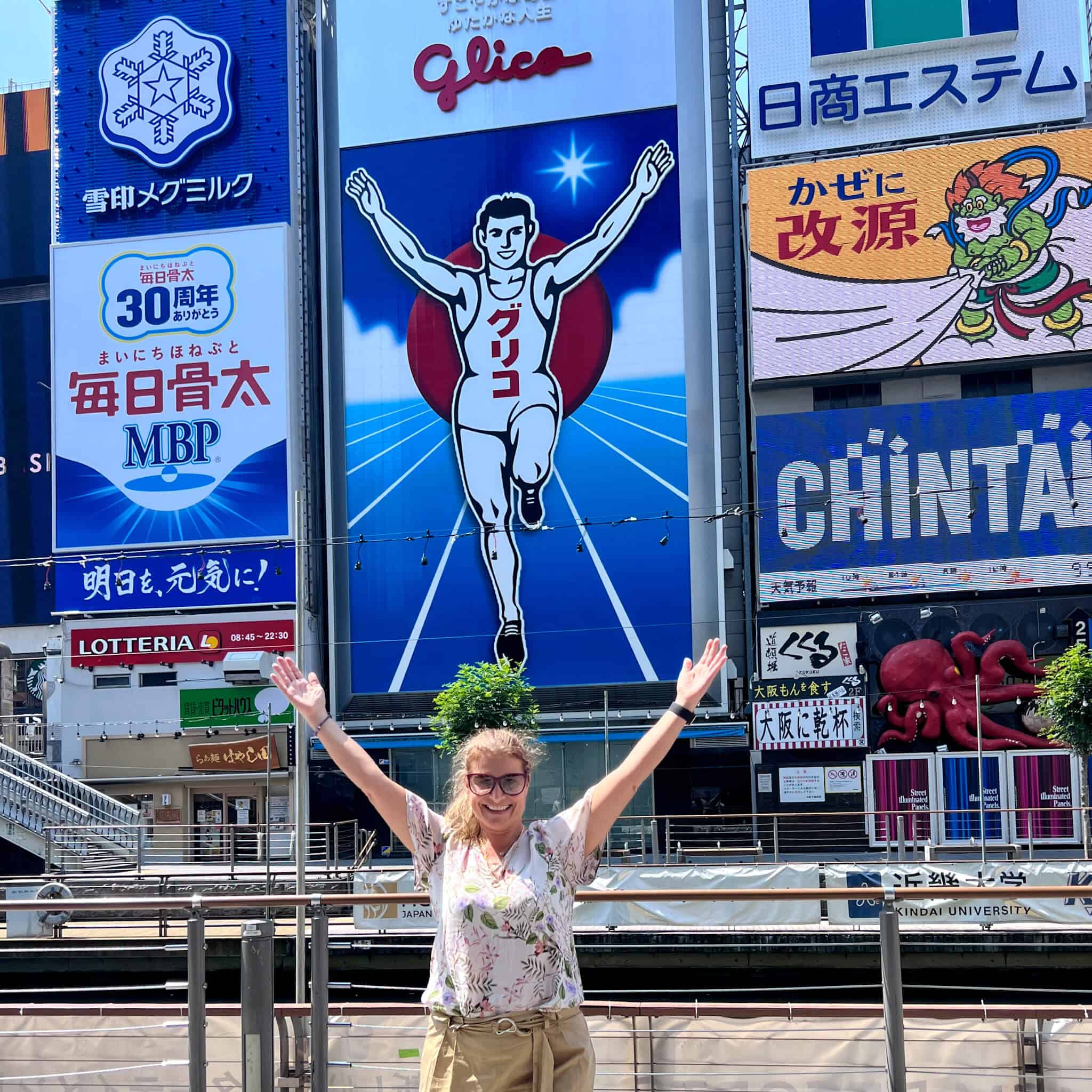 - The Glico Running Man: This iconic neon sign (giant runner) defines Dotonbori visually