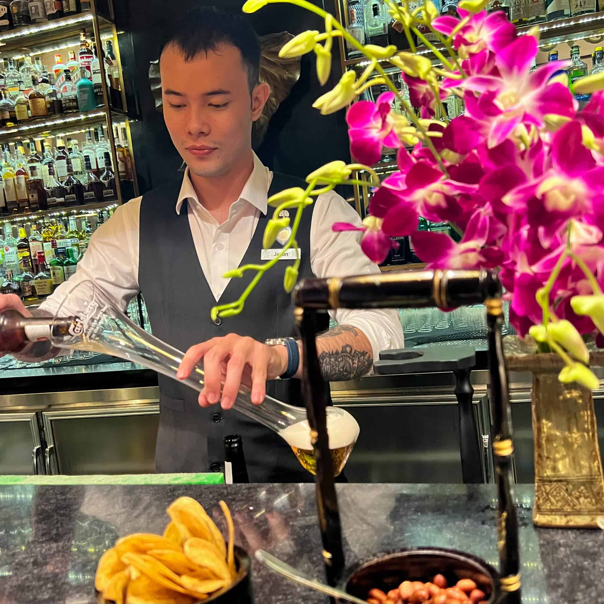 This bar is so beautiful you will want to end your stay here every night. There is happy hour, so check the times before you arrive. The bar is known for its extensive gin selection, so the choice is impressive. Otherwise, they have Singapore Sling or their very own Phnom Penh Sling (which was delicious, by the way).