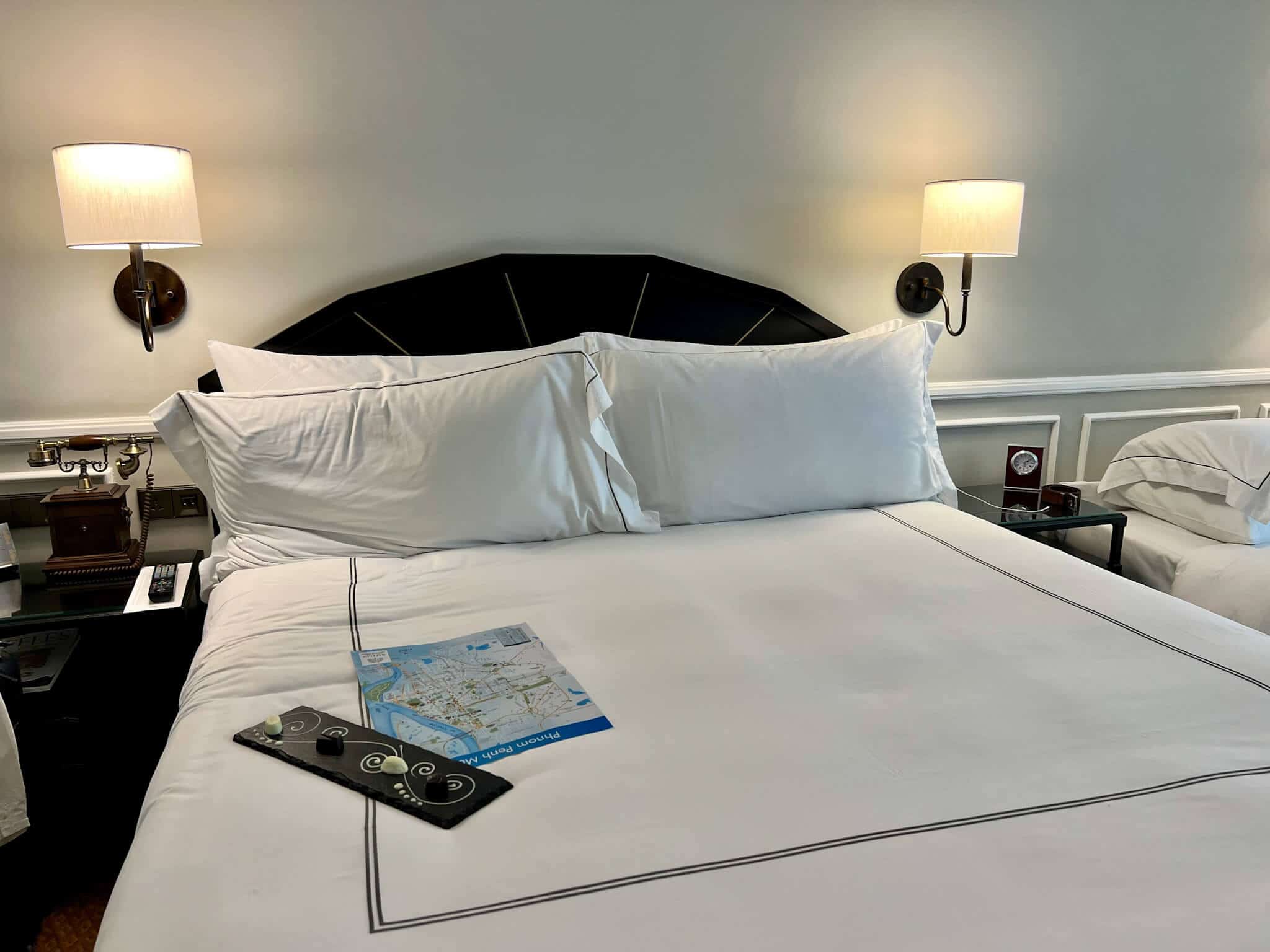 Pulling up to the hotel, I couldn’t help but first notice the well-manicured gardens; once we arrived, we were greeted by the Raffles Doorman, who wore the signature Raffles uniform with a more Cambodian traditional headwear. The staff were friendly and accommodating, and I couldn’t wait to get to my room to check it out.